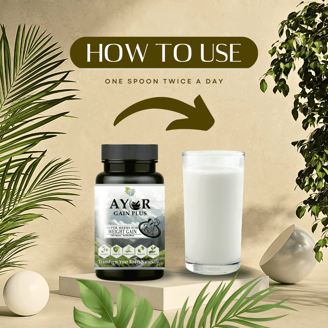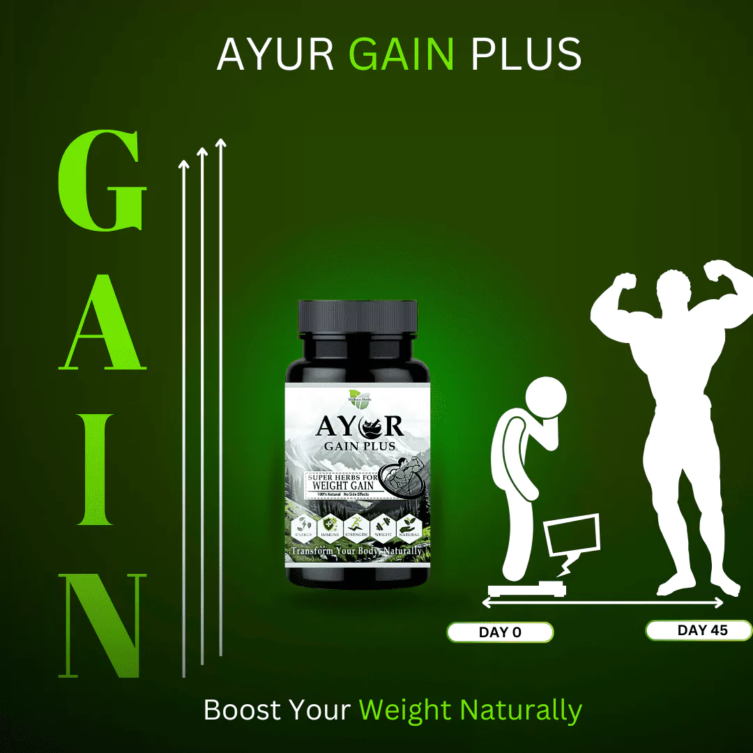 Ayur Gain Plus 17 से भी ज़्यादा जड़ी-बूटियों से मिलकर बना है, जो आपके वजन को बढ़ाने में मदद करती हैं और साथ ही आपके शरीर में ताकत और स्फूर्ति लाती हैं। यह पूरी तरह से आयुर्वेदिक है, इसलिए इससे किसी भी तरह का कोई साइड इफेक्ट नहीं होता है।
